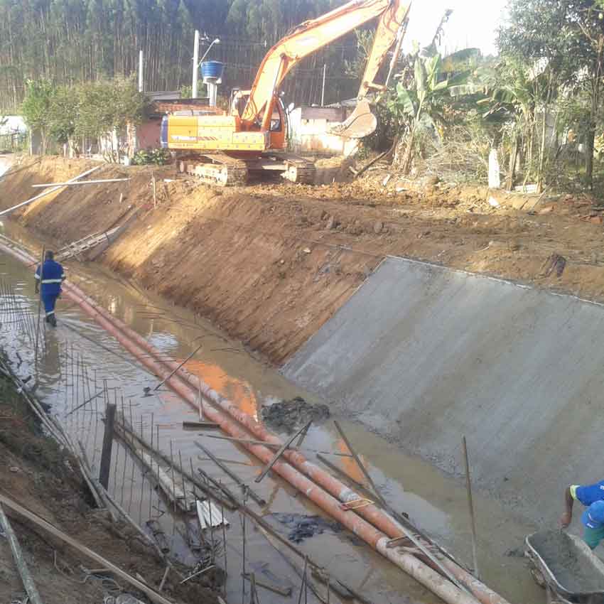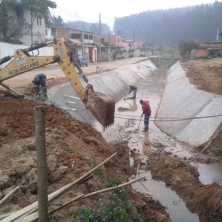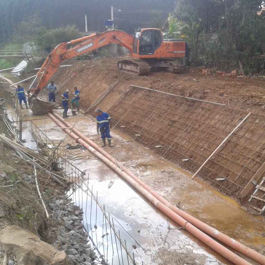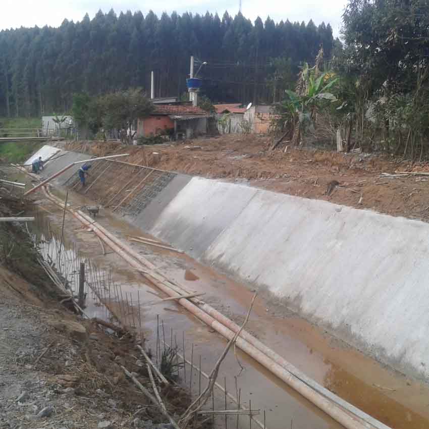 Execução de Obra de Canalização em trecho do córrego do bairro Parque Agrinco – Guararema - SP.